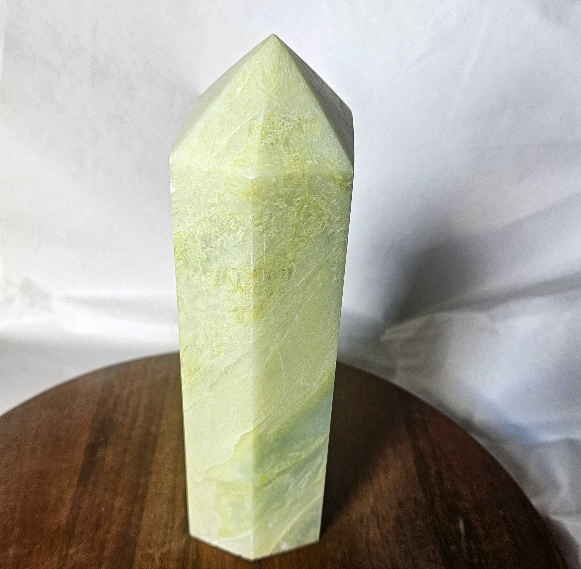 Grounded yet serene, this jade tower blends ancient luck-bringing energy with modern minimalist beauty — a perfect addition to any crystal lover’s collection.